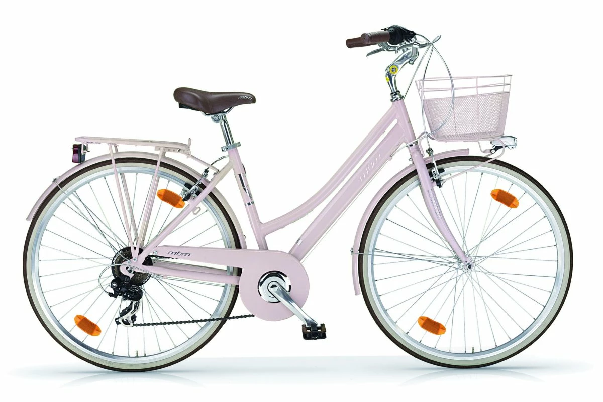 18 hastighed. Shimano Tourney Revoshift , pakkebær i fronten med kurv , batteribelysning, aluminiumsfælge og knudepunkter, aluminium V-bremser og bremsehåndtag, aluminiumstolpost, Selle Bassano Saddle, justerbar stilk.