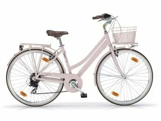 6 hastighed. Shimano Tourney Revoshift , pakkebær i fronten med kurv , batteribelysning, aluminiumsfælge og knudepunkter, aluminium V-bremser og bremsehåndtag, aluminiumstolpost, Selle Bassano Saddle, justerbar stilk.
