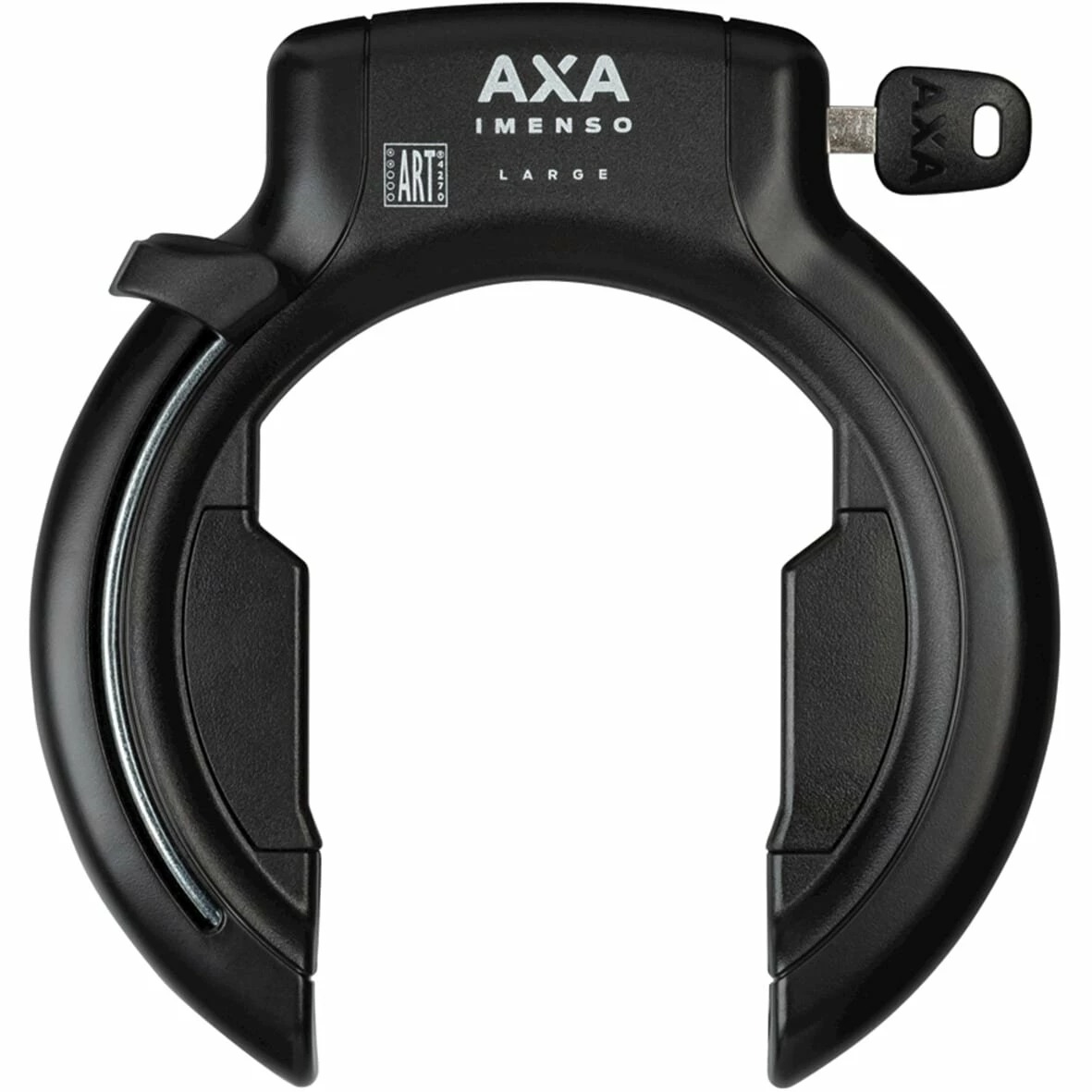 Axa Imenso Large er en rammeplads af høj kvalitet med et innovativt design ved at sætte et UPI-plug-in-kabel eller ULC-plug-in-kæde i siden af ??låsen og dermed forbinde din cykel til et fast objekt. Ringslot har en Art 2 -stjernet godkendelse, med dette opfylder låsen kravene til at tage en cykelforsikringspolice ud. En ekstra bred åbning på 75 mm, så den også passer til brede mudguards eller ballondæk.