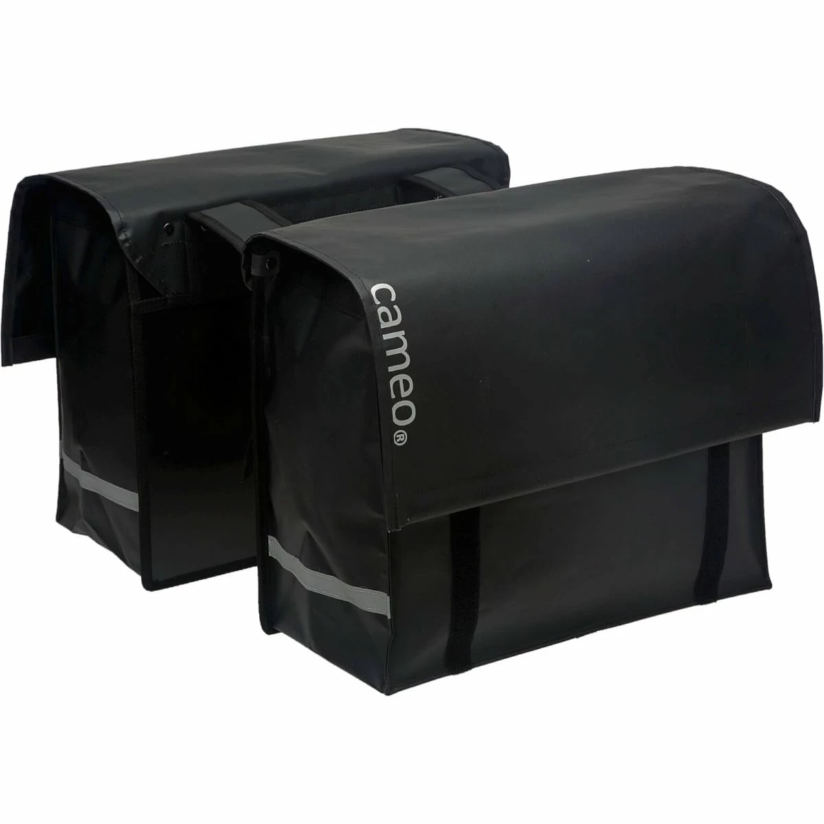 Denne Cameo double cykeltaske er lavet af vandtæt bisonyl, også kaldet lastbilpresenning. Hvis du lukker klappen, så er tasken 100% vandtæt over for regn. Materialet er også meget stærkt.