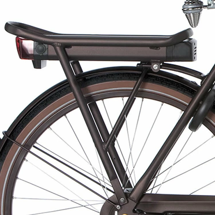 Cortina Bagholder Model Cortina E-U5 36 Volt System. Farve: Demitasse Matt. Velegnet til rammer i størrelserne: Alle versioner med 28 tommer hjulstørrelse. Farve nummer: PRDW 00307.