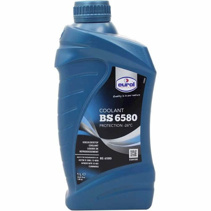 Eurol kølevæsk 1ltr. Blå kølevæske, der opfylder BS6580 -standarden, anbefales til alle kølesystemer med forbrændingsmotorer og andre varmeoverførselssystemer. Det er baseret på ethylenglycol og formuleret i henhold til retningslinjer fra europæiske bilproducenter. Det indeholder de forudgående kølevæsketilsætningsstoffer, der beskytter mod korrosion og skum. Det er sikkert for gummi, plast, metaller, aluminium og legeringer og tilbyder permanent, garanteret beskyttelse mod frysning op til -26 ° C